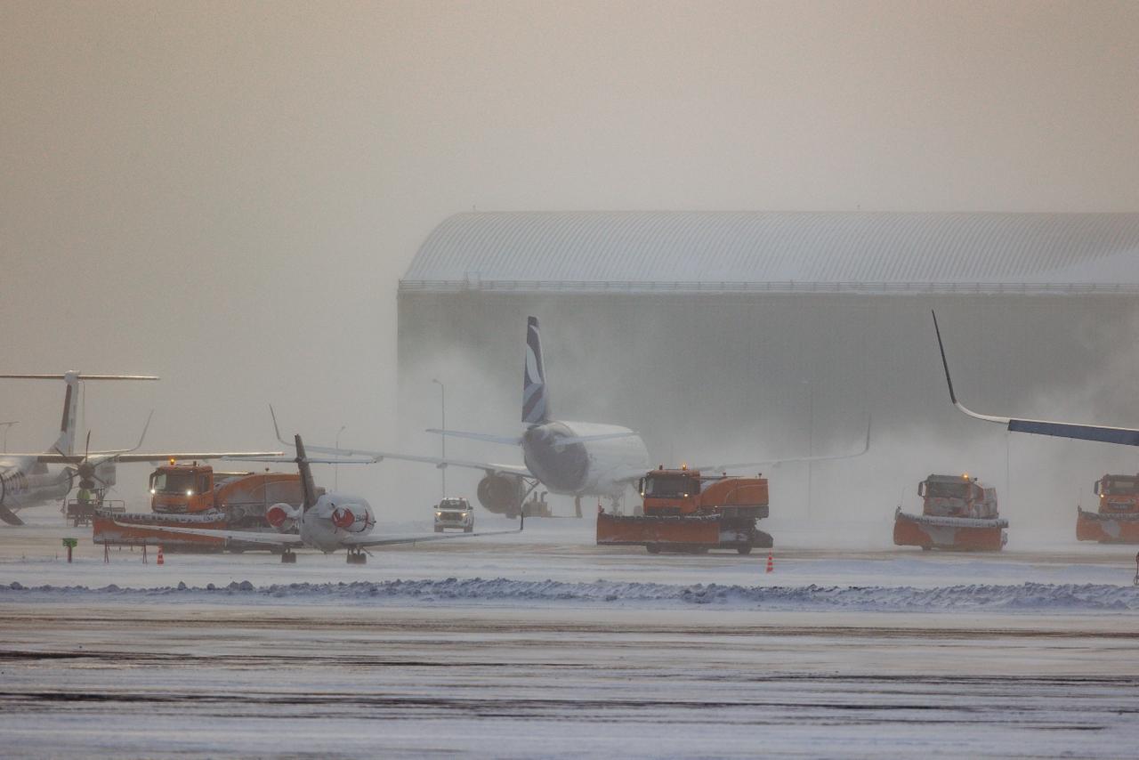 В аэропорту Астаны продолжается круглосуточная уборка снега на перроне и привокзальной территории, все службы работают в усиленном режиме.